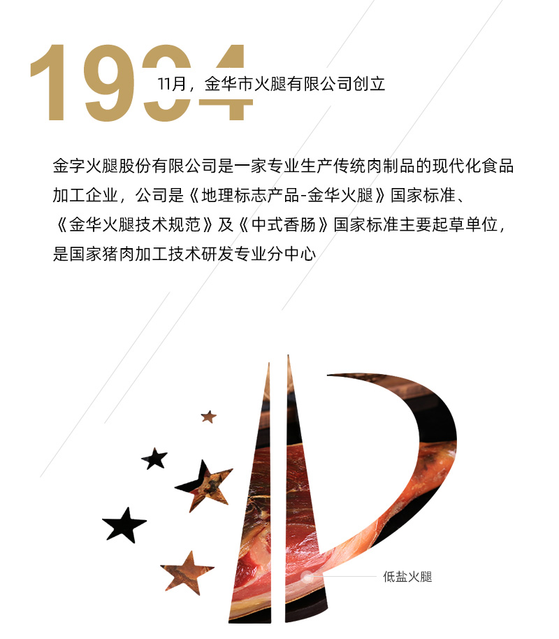 金字火腿股份有限公司是一家專業(yè)生產(chǎn)傳統(tǒng)肉制品的現(xiàn)代化食品加工企業(yè),公司是《地理標(biāo)志產(chǎn)品-金華火腿》國家標(biāo)準(zhǔn)、