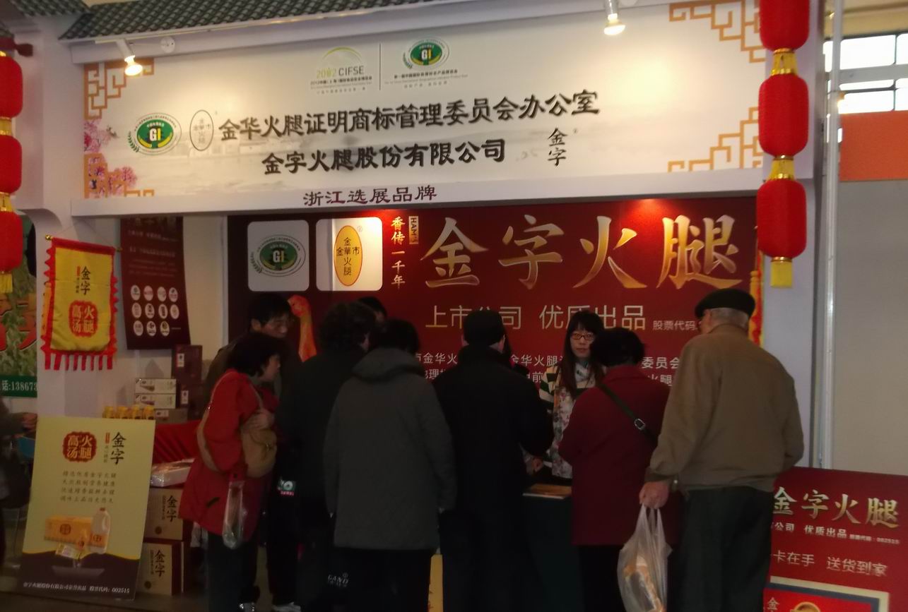 近日,首屆中國國際地理標(biāo)志產(chǎn)品博覽會(huì)在上海展覽中心舉行,全國30多個(gè)省市(自治區(qū))160多個(gè)地理標(biāo)志產(chǎn)品亮相。金字火腿作為浙江省16家地理標(biāo)志產(chǎn)品之一代表金華火腿參展。此次展會(huì)由國家工商行政管理總局、上海市人民政府、中國國際貿(mào)易促進(jìn)委員會(huì)、中國國際商會(huì)、中國民族貿(mào)易促進(jìn)會(huì)主辦,規(guī)??涨埃状稳嬲故玖酥袊牡乩順?biāo)志產(chǎn)品。