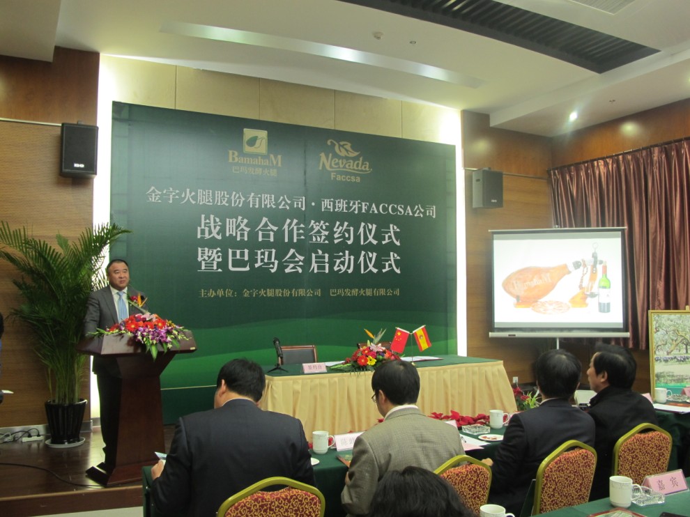 西班牙FACCSA公司負責(zé)人拉蒙先生在致辭中表示,發(fā)酵火腿在中國有巨大的市場空間,巴瑪火腿是中國發(fā)酵火腿的領(lǐng)軍品牌。雙方建立戰(zhàn)略合作關(guān)系,是企業(yè)發(fā)展需要,也是優(yōu)勢互補的最佳選擇。今后,雙方要整合資源,加強交流,深化合作,努力把兩個企業(yè)的合作打造成中西兩國經(jīng)貿(mào)合作的典范。