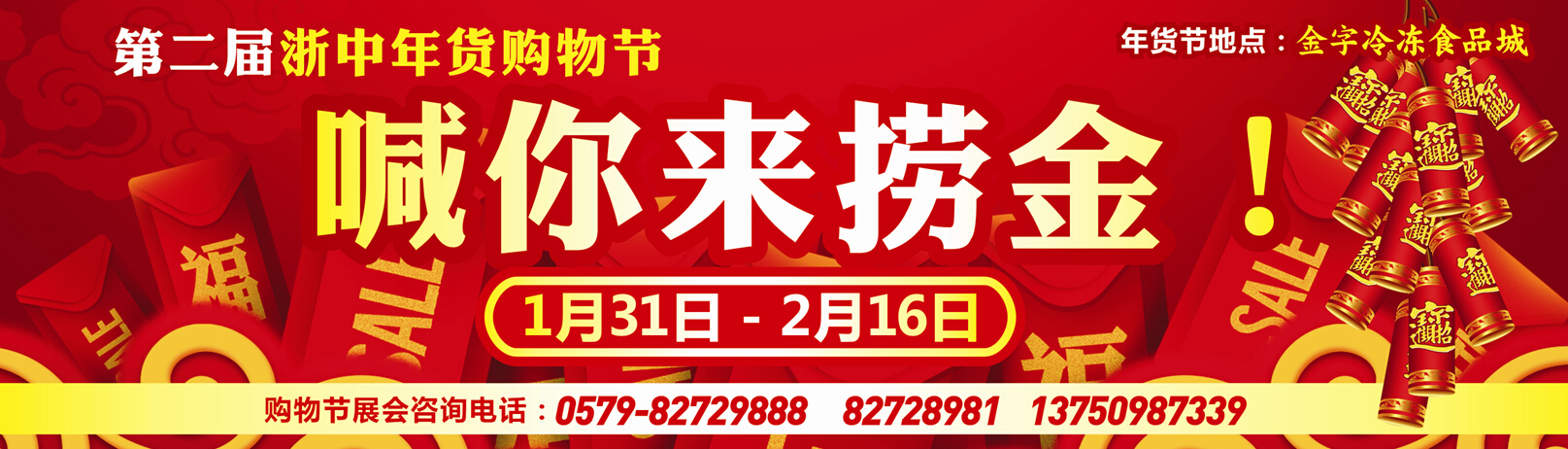 2015年1月31日,第二屆浙中年貨購物節(jié)即將在金字冷凍食品城再次上演年貨盛宴,也許錯過了去年的購物節(jié)狂歡,也許錯過了年末撈金的絕佳時機,而這一次,怎能再次錯過覆蓋金麗衢20多縣市1000萬人口的年貨盛會呢?