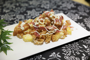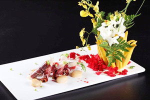 假如火腿有靈性,相信最愿意落在一位能將它千變?nèi)f化的大廚手中。就像我們一樣,在遇到真正的高手時,也總難掩興奮和激動。?華小富,一位從16歲就開始做廚師,至今已經(jīng)有了十幾年從業(yè)經(jīng)驗。打通我們報名電話時,他說的第一句話是:“讓我們指點你們一下,怎么做好火腿菜?!蹦欠N隔著電話就能清晰感受到的自信。? 不過親眼見到了,才知道這種自信的確有道理:從冷菜到熱菜,從主食到甜品……