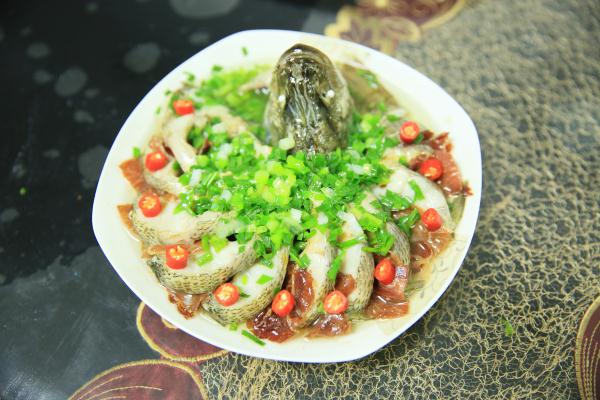 制作方法:鱸魚(yú)洗干凈,先將魚(yú)頭切下;剪掉魚(yú)鰭,從頭部開(kāi)始,用刀從魚(yú)背往魚(yú)腹切到魚(yú)尾處,切忌不可切斷;將鹽和料酒制作成的混合物抹遍魚(yú)全身,腌制15分鐘備用;生姜、蔥切絲,墊在盤(pán)子底部,將腌好的魚(yú)擺出孔雀開(kāi)屏的造型,魚(yú)頭放在最前面,尾巴部分也可單獨(dú)切下來(lái),放在魚(yú)頭下方;擺好造型后,在每一塊魚(yú)肉中間夾入一小片火腿,再在魚(yú)上鋪一層姜蔥絲,冷水入鍋,大火蒸10分鐘即可出鍋;出鍋后,去掉上面的姜蔥絲,淋上一點(diǎn)生抽,再放上適量蔥末;鍋內(nèi)倒油,燒熱后淋到魚(yú)上,再放上若干紅辣椒裝飾即可。